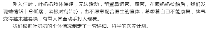 我們根據葉奶奶的個體情況制定了一套詳細、科學的醫養計劃